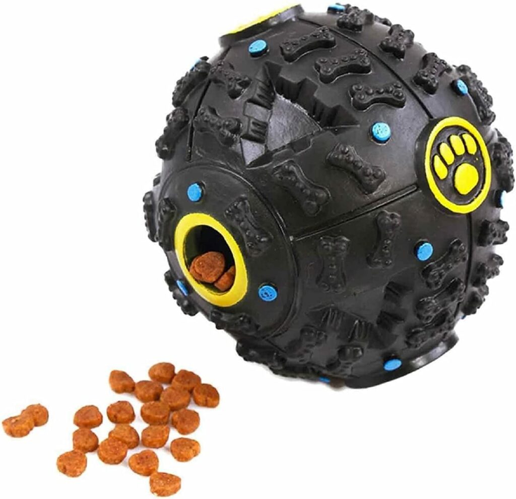 When a dog interacts with this puzzle, treats are dispensed. It has treat-filled compartments and a mechanism that releases them when a dog plays with it.